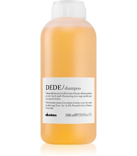 Davines Essential Haircare DEDE Shampoo, 1000 ml, Shampoos for Women, In order to keep your hair healthy, shiny and vibrant, it's important to give it the proper care. And that starts with regular hair washing. A shampoo from DavinesEssential HaircareDEDE Shampoo will help to effectively remove any dirt, grease and styling and cosmetic product residues from the hair and scalp. It gives you a feeling of freshness and cleanliness, and ideally prepares your hair and scalp for further care while supporting the effects of the active ingredients it contains. Characteristics: washes hair and cleans the scalp regenerates and nourishes hair moisturises intensely leaves hair soft How to use: Apply an appropriate amount of shampoo to wet hair. Work up a lather and rinse thoroughly. ...
