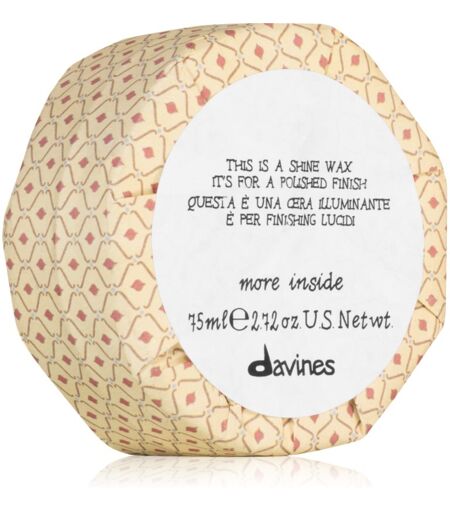 Davines More Inside Shine Wax, 75 ml, Hair wax for Women, What hairstyle will complement your outfit and accentuate your personality today? Whatever style you decide to shape your hair into, hair wax from DavinesMore InsideShine Wax will make it possible. Create a hairstyle like a professional in the comfort of your own bathroom. It gives you full control over your hair, so you can shape and style it however you wish. Plus, it will give you a strong hold and pleasantly surprise you with its long-lasting durability. Characteristics: wet gloss effect natural hold easy application How to use: Apply to dry hair and style as needed. ...