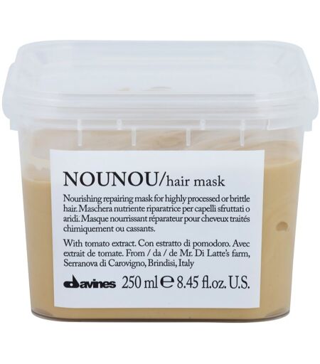 Davines NouNou, 250 ml, Hair Masks for Women, Do you feel that your hair needs more intensive care than conditioners or balsams can provide? A hair mask from DavinesNouNou will perfectly enrich your hair care routine. Thanks to its high concentration of nourishing ingredients aimed at tackling specific problems, it restores vitality and beauty to your hair. It penetrates deep into the hair fibres to strengthen them, nourish them intensively, promote their regeneration and smooth their surface, leaving them beautifully soft to the touch, radiantly shiny, but also more resilient to damage. Characteristics: regenerates the hair along its entire length restores hair structure strengthens the hair fibre restores hair’s natural, healthy appearance goes deep into the hair fibre How to use: Wash with shampoo, then apply to damp hair. Leave to act as instructed on the packaging, then rinse thoroughly. ...