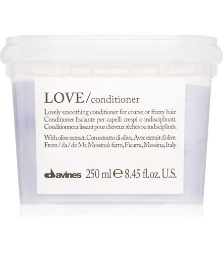 Davines Essential Haircare LOVE Smoothing Conditioner, 250 ml, Hair Conditioners for Women, During hair washing, shampoo opens the external hair structure - the cuticle. That's why it's important to give your hair a treatment after washing to reseal the cuticle. And that's exactly what the conditioner from DavinesEssential HaircareLOVE Smoothing Conditioner takes care of. In addition to closing the hair fibre, it ensures its nourishment, hydration and softness, without which beautiful, shiny and healthy hair cannot do without. It will protect the hair from mechanical damage and dryness, as well as smooth the surface and help soften it, which will make it easier to detangle and further styling. Characteristics: smooths and acts against frizz makes untangling and styling easier provides the necessary hydration seals the hair’s surface, making it more resilient How to use: Apply after first washing with shampoo. Leave to act for a while, then rinse thoroughly. ...