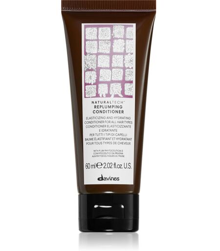 Davines Naturaltech Replumping Conditioner, 60 ml, Hair Conditioners for Women, During hair washing, shampoo opens the external hair structure - the cuticle. That's why it's important to give your hair a treatment after washing to reseal the cuticle. And that's exactly what the conditioner from DavinesNaturaltechReplumping Conditioner takes care of. In addition to closing the hair fibre, it ensures its nourishment, hydration and softness, without which beautiful, shiny and healthy hair cannot do without. It will protect the hair from mechanical damage and dryness, as well as smooth the surface and help soften it, which will make it easier to detangle and further styling. Characteristics: makes untangling and styling easier provides the necessary hydration improves the structure of the hair protects against negative environmental effects How to use: Apply after first washing with shampoo. Leave to act for a while, then rinse thoroughly. ...