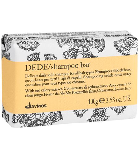 Davines Dede Shampoo Bar is a solid solid shampoo for gentle daily cleansing for all hair types. A solid texture that develops into a rich creamy lather upon application, providing softness, shine and silky texture. Benefits: Gentle daily cleansingFor all hair typesRich creamy foamImparts softness, shine and silky texture Application: Wet the shampoo bar and emulsify it in your hands to create a soft creamy lather.Apply the foam to damp hair and massage until the product is fully distributed.Rinse well and use the appropriate conditioner if necessary.Rinse off the solid shampoo and let them air dry. ...