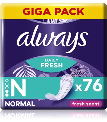 Always Daily Fresh Normal, 76 pc, Sanitary pads for Women, Maximum comfort and 100% reliable protection during your period. Always Daily Fresh Normal sanitary towels ensure you feel comfortable and confident. Characteristics: highly breathable thin and discreet also great for sport and leisure ideal size for light flow days lightly fragranced odour-lock technology ...