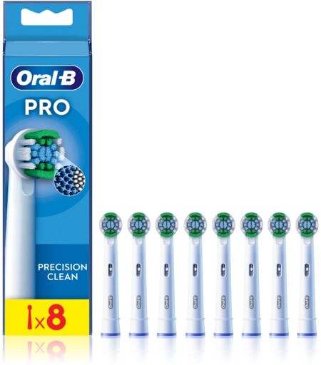 Oral-B PRO Precision Clean, 8 pc, Replacement brush heads unisex, The Oral-B PRO Precision Clean replacement toothbrush heads help you to get the best results from your oral hygiene. Changing the heads regularly guarantees you are always cleaning your teeth as effectively as with a new brush. Characteristics: cleans teeth even in hard-to-reach places comfortable and easy handling removes plaque coloured bristles indicate when you need to replace the brush head brushes teeth more effectively than a manual toothbrush How to use: Attach the replacement head to the appropriate brush and click into place. Rinse the brush head thoroughly under running water after every use. Replace the brush head regularly, ideally every 3 months. ...