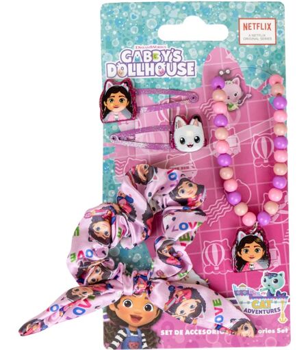 Gabby's Dollhouse Beauty Set Accessories, 1 pc, Kids’ sets For Kids, Your kid’s tiny little pigtails would look even more adorable with something pretty! This Gabby's Dollhouse Beauty Set Accessories hair accessory will make any hairstyle even cuter. Characteristics: with a popular kids’ motif with a popular children’s motif amazing as a gift The set contains: Necklace 1 pc Hair Rings 1 pc hair clip 2 pc ...