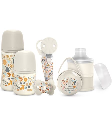 Suavinex Wonderland Baby Set Cream, , Baby Bottles For Kids, Make life easier for yourself and your baby, or for a new parent you know. Suavinex Wonderland Baby Set Cream baby set is full of little essentials one needs in order to take care of a baby. This handy kit will always make for a wonderful gift. Characteristics: suitable for babies including newborns beautiful gift packaging amazing as a gift modern design The set contains: Suavinex Wonderland SX Pro Physiological Anti-Colic baby bottle 150 ml Suavinex Wonderland SX Pro Physiological Anti-Colic baby bottle 270 ml Suavinex Wonderland Soother Clip with Ribbon dummy clip 1 pc Suavinex Wonderland SX Pro Physiological 0-6 m dummy 1 pc Suavinex Wonderland Duo Soother Case dummy box 1 pc powdered milk dispenser 1 pc ...