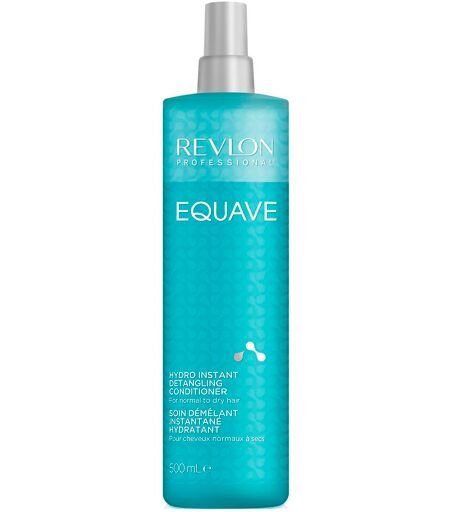 Revlon Professional Equave™ effectively combines hair detangling with formulas for protection and specific care of different hair types. The range of easy-to-use leave-in conditioners thus enables individual care solutions. Our professional two-phase leave-in conditioner Equave™ Hydro for normal to dry hair detangles hair immediately, acting as a primer for the hair, making it the first step in your hair care routine. Our classic detangling spray has a lightweight, two-phase formula that provides a host of immediate benefits. Hair is 9x easier to detangle and 2x more resistant to breakage, which helps keep lengths and ends healthy longer. Hair can be styled in a safe way as the conditioner protects hair from heat up to 220°. With the leave-in conditioner's expertly developed Kinetic Technology™, movement meets innovation. By shaking the two-phase leave-in spray conditioner, the two phases mix together to instantly detangle and protect hair. Shake. Spray. Detangle. The leave-in conditioner with heat protection can be sprayed on damp or dry hair, easily, without rinsing. Detangled hair looks 89% smoother and shinier. To optimize each step of your professional hair care routine, the 500 ml, 200 ml or 50 ml conditioner for normal to dry hair can be applied after using Revlon Professional Equave™ Detox Micellar Shampoo. How to use: shake to activate our Kinetic Technology™ with dual action: instant conditioning and frizz control. Apply to damp or dry hair and comb through. Do not rinse. ...