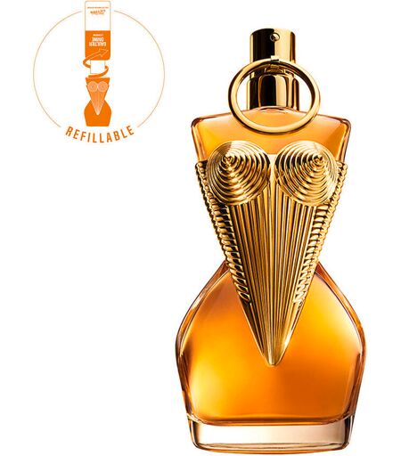 It's time to reveal your inner goddess. Radiate omnipotent energy and cosmic self-confidence with GAULTIER DIVINE LE PARFUM. This year, Jean Paul Gaultier celebrates the coronation of the radiant sun goddess GAULTIER DIVINE LE PARFUM. The new femininity is the solar, intense version of the original GAULTIER DIVINE deity. Her iconic corset shines more golden than ever before and radiates irresistible allure. The ambery FLORALE Eau de Parfum Intense combines radiant frangipani, sensual benzoin and an intense salty component. A solar Eau de Parfum Intense worthy of a goddess. Now even refillable for the 50 ml & 100 ml bottles! Top note: salty noteHeart note: lilyBase note: meringue ...