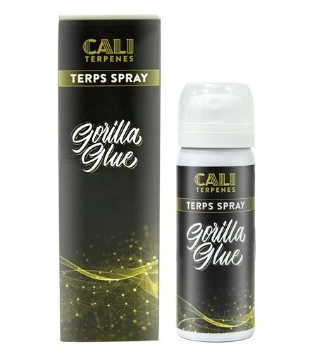 Gorilla Glue Terps Spray® is a system designed for easy application of Cali Terpenes' Gorilla Glue terpenes (cannabis flavourings) into all types of products such as: Food/Edibles. Cannabis concentrates and extracts (rosin, dry, BHO, etc.). Cannabis or cannabis flowers. This product does not contain cannabinoids. 0 % THC, CBD, etc. Thanks to the mist atomizer, Terps Spray can easily, quickly and evenly scent anything you wish. After years of research and analysis of consumer needs, Cali Terpenes has finally offered a definitive solution for easily adding terpenes in a convenient, concentrated spray format. For the first time, spraying terpenes is an easy, quick task with uniform results. All thanks to a special valve designed specifically for mist spray. Terpenes are 100% organic. Made from high quality raw materials from non-GMO crops, without pesticides and contaminants. Contains nitrogen that simply pushes the terpenes (without mixing with them) towards the valve and acts as a pressurized atomizer. Gorilla Glue terpenes from Cali Terpenes have an intensely deep and earthy aroma and smell due to the high b-caryophyllene content in the profile with a bright, pungent, piney and resinous aroma. The terpene profile of Gorilla Glue acts together with other compounds (mainly cannabinoids) in a so-called additive effect. Main terpenes: Caryophyllene, Myrcene, Limonene, Linalool, Beta-Pinene, Alpha-Pinene, Terpinolene Volume: 5 ml or 15 ml The process of how to quickly add aroma to any product is easy: Spray the spray over the desired product, at a distance of about 35-45 cm, and circle evenly with quick hand movements to make sure the effect is balanced. After spraying (both sides), mix if necessary or possible and store in an airtight container for best results and aroma preservation. One second of spray represents approximately 0.4-0.8 ml of aroma, depending on how hard the nozzle is pressed. Warning: Do not shake before or during use. The amount of flavouring used should never exceed 4 % of the total weight of the desired product. Usually less is more, keep this in mind to achieve the perfect aroma. Recommendations for the use of Cali terpenes: The terpenes used in Terps Spray are 100% pure and should be handled with care. When diluted in the desired product and in the correct proportions, terpenes are 100% safe and provide aroma and other benefits. Food and beverages The correct proportion of terpenes (cannabis flavourings) recommended for food and beverages is much lower than for e-liquids and cannabis products. The amount of terpenes always depends on the base of the food or drink being produced and also on the process used. It is recommended to use terpenes during cold processes and when there are no pressure changes (e.g. vacuum drying) as this will stop any evaporation and allow them to fully dissolve and be absorbed into the food or drink. Examples of ratios used in food and beverages: Ice cream: 0.025 ml to 0.1 ml per approximately 1... ...