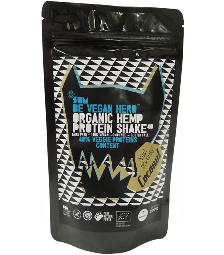 SUM BE vegani HERO TM is a new series of BIO certified hemp proteins for the preparation of nutritious cocktails. You can prepare a tasty and nutritious drink right away, just mix it with water or vegetable milk, preferably in a shaker. We use only high-quality selected BIO raw materials and only natural aromas. Gently sweetened with organic nectar from coconut flowers. Without GMOs or any artificial additives. Naturally nutritionally valuable mixture for the preparation of a cocktail with a high content of complex proteins (up to 40 %). The main components of the product SUM BE vegans HERO TM COCONUT: * Hemp protein, BIO, raw.Hemp seed is an important plant source of complex full-value proteins, it contains all 20 basic amino acids (including all 8 essential). Hemp protein powder with a naturally low carbohydrate content, but rich in protein and fiber, is made from seed after pressing the oil only by a gentle method of grinding and sieving without thermal degradation or chemical extraction. It does not contain any known allergens. An excellent source of protein not only for active people and athletes, but also for people with intolerance or allergies to other sources of protein (eg foods containing gluten, peanuts, soy, milk or eggs) or for vegans and vegetarians. In addition, hemp protein powder is a natural source of B vitamins as well as trace elements such as iron, copper, magnesium, manganese, zinc, phosphorus, potassium - so we do not have to artificially enrich our product with these micro-nutrients. * Organic coconut flour.Of course, coconut flour is not grated coconut as we commonly know it. It is a finely ground flour from coconut pulp after pressing the oil. Coconut flour comes from the Philippines and Sri Lanka, as part of Fair-trade projects. It means sustainable production, no child labor, no chemicals and real respect for the local ecosystem. In this case, there is no danger of endangered animals or plants losing their natural environment. On the contrary, by purchasing coconut products in organic and fair-trade quality, you will support the sustainability of the ecosystem in these localities. Basic preparation guide for a shake for 1 adult: Mix 30g of powder (1 scoop or 2 heaped tablespoons) with 200 ml of water, preferably in a shaker. You can also mix the protein shake with plant milk (e.g., rice milk) or with fruit or vegetable juice. You can also add it to yogurt, porridge, or cereals. Excellent ingredient for making smoothies. * 30g scoop included in the package Ingredients: * hemp protein powder, * coconut flower sugar, natural flavors, unrefined sea salt, and * coconut flour 11%. * from organic farming (bio) Storage: store in a dry place, away from direct sunlight or heat sources. After opening, close the package well, keep it in a dark place, and protect the contents from air, moisture, and heat. Nutrition information per 100g (coconut flavour): - Energy: 1529 kJ / 365 kcal- fat: 9.4g- Carbohydrates: 23g, of which sugars... ...