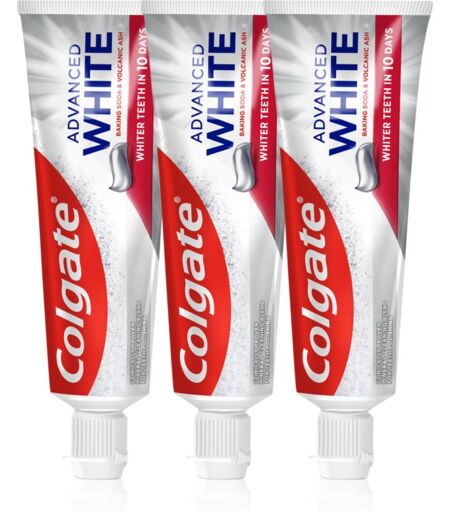 Colgate Advanced White Volcanic Ash and Baking Soda, 3x75 ml, Whitenning toothpaste unisex, The Colgate Advanced White Volcanic Ash and Baking Soda toothpaste provides complete care for your teeth and gums and leaves your breath pleasantly fresh. Characteristics: fights tooth decay and plaque guaranteed to be gentle on tooth enamel removes plaque and tartar freshens breath takes care of gums How to use: Clean the teeth thoroughly for at least two minutes. For further treatment of the teeth, use dental floss or an interdental brush. ...