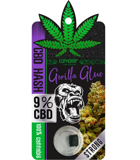 9% CBD Hash GORILLA GLUE. CBD Hash do not cause psychoactive effects. Weight: 1 gCBD: > 90 mgTHC: < 0,2 % Made of Pure Cannabis Sativa. Notice Product of a variety registered in the EU. Only for collecting purposes. Products have undergone extensive laboratory analysis to ensure the absence of synthetic cannabinoids. We prioritize quality and safety in products to provide you with the best experience possible. Please note: Not for children. Keep out of reach of children. Do not use when pregnant or breastfeeding. Always consult your doctor before before modifying or using any new product. This product is not intended to diagnose, treat or prevent any disease. Do not use immediately before and while driving a motor vehicle This product complies with all applicable laws and regulations. It is intended solely for industrial, technical, and horticultural purposes. Not intended for direct consumption or smoking. The product may naturally lose weight over time. Sale to individuals under 18 years of age is prohibited. Upon sale (in store / via shipping service / via other dispensing point), the seller will verify that the buyer is not under 18 years of age. ...