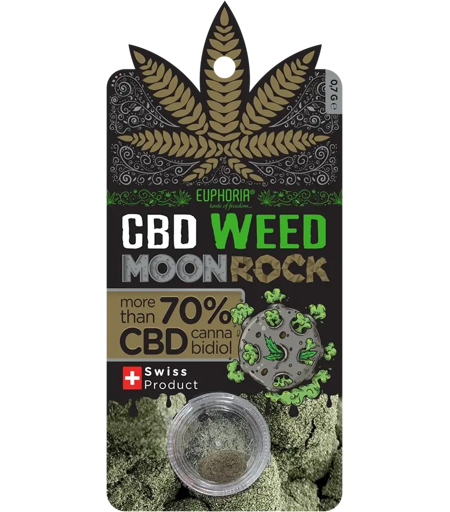 CBD Moon rock flower/buds, seedless Weight approx.: 0,7 g CBD > 70 % THC < 0,2 % Distributor: EUPHORIA TRADE s.r.o.Klimentská 1216/46110 00 Prague 1ID: 24228648 Products have undergone extensive laboratory analysis to ensure the absence of synthetic cannabinoids. We prioritize quality and safety in products to provide you with the best experience possible. Technical cannabis flowers. Technical hemp is derived from seeds of varieties listed in the Common Catalogue of Varieties of Agricultural Plant Species. This product complies with all applicable laws and regulations and is intended solely for industrial, food, cosmetic, technical, or horticultural purposes. Not for direct consumption or smoking. The product may naturally lose weight over time. Store in a dry and dark place. Keep out of reach of children. Upon sale (at the store / via a transport service / via another dispensing point), the seller will verify that the buyer is not under 18 years of age. ...