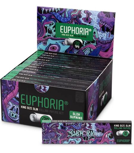 Euphoria Rolling Papers Kingsize Slim Psychedelic + Filters, 32 Rolling Papers + 32 Filter Tips