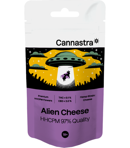 Description Unleash an out-of-this-world experience with Cannastra HHCPM Flower Alien Cheese. Crafted with premium quality, this hemp flower offers an impressive 97% purity, delivering a unique fusion of strength and flavor. It’s designed to satisfy both the curious explorer and the seasoned enthusiast, offering a blend of potency and taste that’s hard to beat. 15% HHCPM – Elevate Your Senses At the core of this remarkable flower is a powerful 15% concentration of HHCPM. This cannabinoid provides balanced, uplifting effects that can enhance your sense of relaxation and bring a deeper level of calm to your day. Whether you're unwinding after work or seeking a soothing experience, HHCPM makes Alien Cheese an ideal choice. Natural Terpenes – A Bold Flavor Experience What truly sets Alien Cheese apart is its robust and distinctive flavor, driven by natural terpenes. With notes of earthy cheese and subtle spicy undertones, this flower offers a taste experience that’s rich and unforgettable. The terpenes not only enhance the flavor but also work in harmony with HHCPM to elevate the effects of the flower, offering a more complete and satisfying experience. Versatile and Premium Quality Whether you're new to hemp or an experienced user, Cannastra HHCPM Flower Alien Cheese delivers consistent quality and potency. Available in quantities ranging from 1g to 100g, this flower is perfect for any occasion, whether you’re sampling for the first time or stocking up on a favorite. Why Choose Alien Cheese? With its high cannabinoid content and distinctive terpene profile, Alien Cheese offers a unique and enjoyable experience that stands out from the crowd. Its potent yet smooth effects and complex flavor make it a premium option for those seeking a bold and balanced hemp flower. Explore the bold, rich flavors and effects of Cannastra HHCPM Flower Alien Cheese and discover why this hemp flower is a top-tier choice for enthusiasts everywhere. Distributor: Brands of Hemp s.r.o.Žižkova 708, 261 01 PříbramCzech Republic Products have undergone extensive laboratory analysis to ensure the absence of synthetic cannabinoids. We prioritize quality and safety in products to provide you with the best experience possible. Technical cannabis flowers. Technical hemp is derived from seeds of varieties listed in the Common Catalogue of Varieties of Agricultural Plant Species. This product complies with all applicable laws and regulations and is intended solely for industrial, food, cosmetic, technical, or horticultural purposes. Not for direct consumption or smoking. The product may naturally lose weight over time. Store in a dry and dark place. Keep out of reach of children. Upon sale (at the store / via a transport service / via another dispensing point), the seller will verify that the buyer is not under 18 years of age. ...