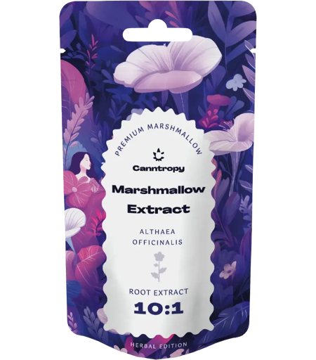 Description Product introduction Althaea officinalis, also known as marshmallow root, is a plant with a rich history of use in traditional medicine. The powdered extract from its root, with a high 10:1 concentration, is an excellent addition to your collection of natural extracts. Canntropy offers this premium product in four different sizes – 5 g, 10 g, 25 g, and 100 g. What is Althaea officinalis? Marshmallow root is a perennial herb native to Europe and western Asia. Its medicinal use dates back centuries, being valued in both folk and modern medicine. The plant grows up to 1,5 meters tall, with delicate pink or white flowers often grown in gardens. However, the true treasure lies in its root, packed with beneficial compounds like mucilage, pectins, and flavonoids. Health benefits The root of Althaea officinalis is renowned for its soothing and protective properties. It helps alleviate irritation of mucous membranes, especially in the respiratory and digestive systems. It also supports skin hydration and can reduce inflammation. With a high concentration of active ingredients, this extract is incredibly potent. Why choose this product? This premium extract from Canntropy’s Herbal edition is crafted with a focus on quality and purity. Highly concentrated and ideal for collectors, it is the perfect choice for those looking to enrich their collection of natural extracts. Features: premium powdered Marshmallow (Althaea officinalis) extract ratio 10:1 packs of 5, 10, 25 and 100 g Distributor: Brands of Hemp s.r.o.Žižkova 708, 261 01 PříbramCzech Republic This product is for collector's purposes only. It is not intended for direct consumption or smoking. Store in a dry and dark place. Keep out of reach of children and animals. No sale to persons under 18 years of age. ...
