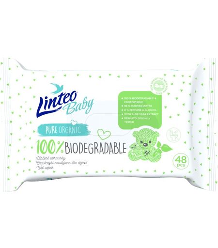 Linteo Baby 100% Biodegradable, 48 pc, Baby Wipes For Kids, The Linteo Baby cleansing wipes take care of your child’s skin simply, quickly and reliably. Characteristics: looks after and cleanses children’s skin also suited to sensitive or allergy-prone skin removes dirt soothes irritated areas softens children’s skin Ingredients: no perfume How to use: Clean your child’s skin gently with the wipe. Use as needed. ...