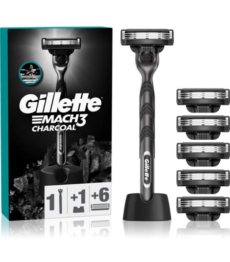 Gillette Mach3 Charcoal shaver with a stand + replacement blades 6 pc