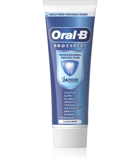 Oral-B Pro Expert Professional Protection, 75 ml, Complete protection unisex, The Oral-B Pro Expert Professional Protection toothpaste ensures complete care for your teeth and gums. It cleans teeth of plaque and food remnants while caring for the gums and mucous membranes in your mouth. Characteristics: keeps breath fresh reduces the sensitivity of teeth strengthens teeth protects against tooth decay and plaque cleans teeth reliably prevents the build-up of tartar How to use: It is advisable to use the toothpaste at least twice a day, in the morning and evening, or after every meal. Apply an appropriate amount of toothpaste to the brush and clean the teeth for at least two minutes. Rinse your mouth thoroughly. ...