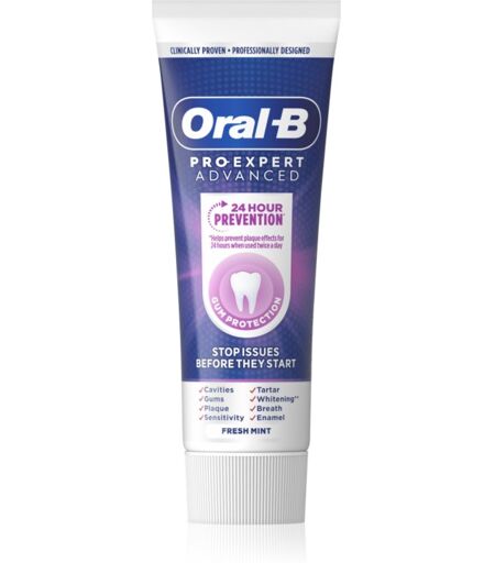 Oral-B Pro Expert Advanced, 75 ml, To strengthen tooth enamel unisex, The Oral-B Pro Expert Advanced toothpaste ensures complete care for your teeth and gums. It cleans teeth of plaque and food remnants while caring for the gums and mucous membranes in your mouth. Characteristics: takes care of gums freshens breath prevents plaque prevents tooth decay How to use: It is advisable to use the toothpaste at least twice a day, in the morning and evening, or after every meal. ...