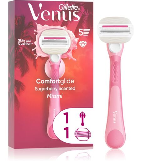 Gillette Venus Comfortglide Sugarberry Miami, 1 pc, Razors for Women, Do you want to achieve a smoothly shaved face or parts of? With the GilletteVenusComfortglide Sugarberry Miamishaver this is the easiest way to do this - easily, quickly and painlessly. Its blades catch every hair you want to remove and shave it off with precision. Enjoy perfectly smooth skin just the way you want it. Characteristics: interchangeable shaver heads the shaver has a moisture strip shaves armpits, legs and intimate areas adapts to the folds of the body ensures a thorough shave and precise results reaches even hard-to-reach places How to use: Use shaving foam or cream, then shave the skin using long, gentle strokes. Replace the shaving head with a new one as soon as the moisture strip wears out or the blades go blunt. ...