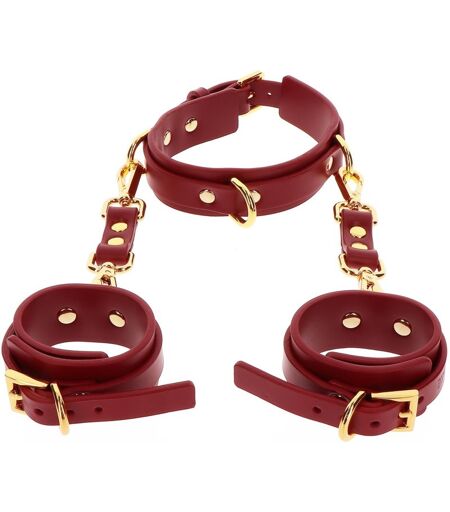 Taboom Bondage in Luxury D-Ring Collar and Wrist Cuffs collar and handcuffs for hands red 42.5 cm