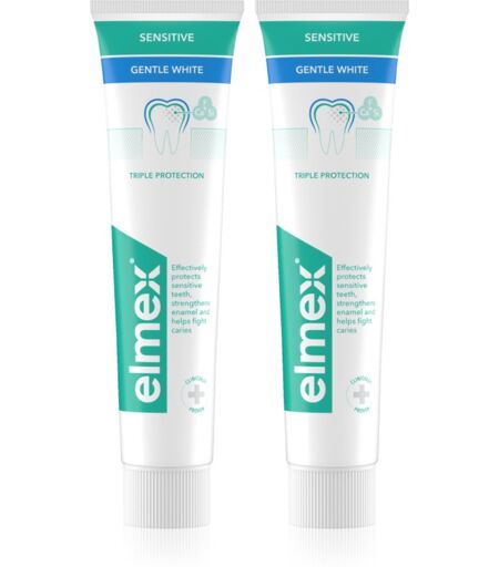 Elmex Sensitive Whitening, 2x75 ml, Toothpastes unisex, The Elmex Sensitive Protection Gentle White toothpaste for sensitive teeth guarantees you can have hot and cold drinks without an unpleasant sensation. Say goodbye to increased sensitivity in your teeth. Characteristics: reduces the sensitivity of teeth protects against tooth decay and plaque whitens teeth takes care of exposed teeth How to use: Use at least twice a day. Clean the teeth thoroughly for at least two minutes. ...