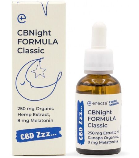 CBD (cannabidiol) is a phytocannabinoid found in the Cannabis Sativa plant. It affects our endocannabinoid system and produces relaxing and calming effects that help induce sleep. In the CBNight PLUS oil blend, this cannabinoid works in synergy with melatonin, an endogenous hormone produced by the pineal gland in our brain, in this case in the form of an external supplement. Melatonin has the specific function of regulating or restoring the sleep-wake cycle and promoting the maintenance of restorative sleep. CBNight hemp oil with melatonin is a safe and effective natural food supplement derived only from Italian organic hemp. Benefits: CBNight hemp oil with melatonin is very useful for treating mild to moderate sleep disorders. The relaxing and soothing action of the cannabinoids is enhanced by the entourage effect created by their synergy. This action is combined with the sleep-regulating effect of melatonin, making CBNight oil particularly effective for: counteracting insomnia helping to reduce the time needed to fall asleep avoiding night-time awakenings making sleep restful and regenerative reducing morning anxiety synchronzsing the circadian rhythm and restoring your natural sleep-wake cycle Properties: CBNight hemp oil with melatonin contains (in 1 Ml) 0.3 mg of melatonin and 8,35 mg of hemp extract. In addition to the primary function of sleep induction and maintenance for which the formula is designed, the oil has analgesic and anti-inflammatory properties due to the very nature of the cannabinoids present in the formula. In addition, the presence of CBD helps in cases of anxiety and chronic stress, lowering levels of physical and muscular tension. Together CBD and melatonin act as neuroprotectants and highly useful antioxidants. How to use: CBNight oil is taken half an hour before going to bed. The best way to take it is sublingually. Simply place the recommended amount of 1ml under your tongue, hold the liquid in your mouth for thirty seconds and swallow only afterwards. In this way, the molecules are not metabolised by the liver and the digestion process, but pass directly into the systemic circulation through the mucous membranes, taking effect very rapidly. It is essential to remember to shake the bottle well before each use. Dosage: While in the case of CBD oil, the question of dosage is very personal and subjective, for taking CBNight hemp oil with melatonin we can give you a precise dosage. It is a perfectly balanced formula of cannabinoids and melatonin, and the recommended dosage is 1 ml per day, taken in the evening, half an hour before going to bed. Products have undergone extensive laboratory analysis to ensure the absence of synthetic cannabinoids. We prioritize quality and safety in products to provide you with the best experience possible. Keep out of reach of children and animals. For adults only. Not recommended for use by pregnant and breastfeeding women. Not intended for direct consumption or... ...