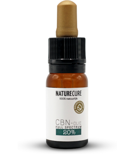 Please note that the product packaging does not indicate the CBD content. Evidence of its inclusion can be found in the form of a laboratory analysis. Unique on the market: CBN oil. Nature Cure is the first in Europe to sell affordable broad spectrum CBN oil of the highest possible quality. Nature Cure broad spectrum CBN oil is highly purified and therefore has a very mild hemp seed taste. Because of the purification, all the chlorophyll has been removed, leaving a light yellow colored oil. The CBN oil standard available in a 2,5%, 5%, 10% and 20% CBN variant. Every strength also contains 2,5% CBD (250 mg) and other cannabinoids such as CBDA (Cannabidiolic Acid), CBG (Cannabigerol), CBDV (Cannabidivarin) and CBC (Cannabichromene) for a maximum entourage effect. Nature Cure CBN oil is available in 4 percentages: 2,5%, 5%, 10% and 20%. This makes it very easy for customers to switch to a higher strength without making difficult calculations how many drops to take. Each bottle contains the batch number that corresponds to the CoA of the relevant batch. This way you know exactly what the exact composition of each bottle of our Nature Cure CBN oil is. Ingredients: coconut oil, (MCT oil), broad spectrum CBN distillate (2000mg CBN) Products have undergone extensive laboratory analysis to ensure the absence of synthetic cannabinoids. We prioritize quality and safety in products to provide you with the best experience possible. Keep out of reach of children and animals. For adults only. Not recommended for use by pregnant and breastfeeding women. Not intended for direct consumption or smoking. Upon sale (in store / via shipping service / via other dispensing point), the seller will verify that the buyer is not under 18 years of age. ...