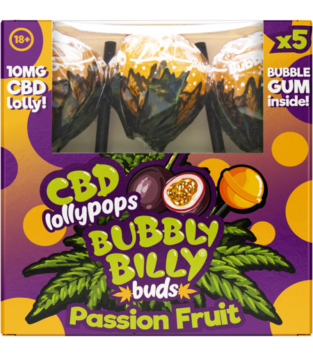 Multitrance Bubbly Billy Buds 10 Mg Passion Fruit Lollies With Bubblegum Inside – Gift Box (5 Lollies), 100 G