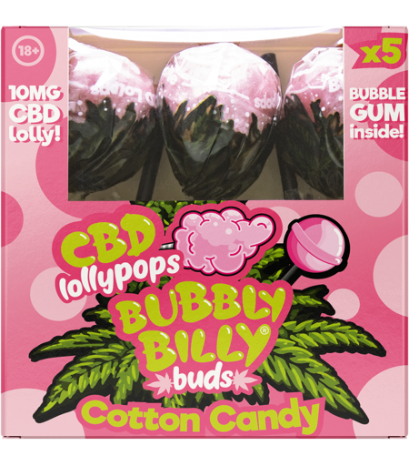 Multitrance Bubbly Billy Buds 10 Mg Cotton Candy Lollies With Bubblegum Inside – Gift Box (5 Lollies), 100 G