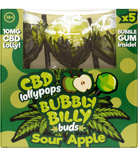 Multitrance Bubbly Billy Buds 10 Mg Sour Apple Lollies With Bubblegum Inside – Gift Box (5 Lollies), 100 G