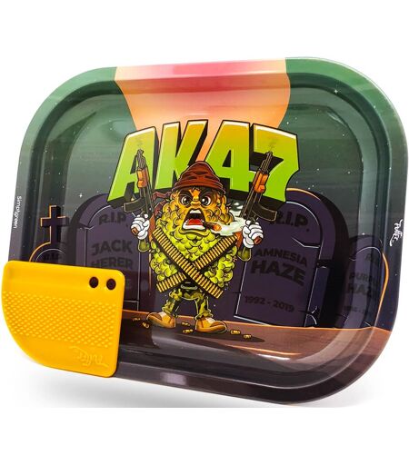 Best Buds Mission Ak47 Small Metal Rolling Tray With Magnetic Grinder Card