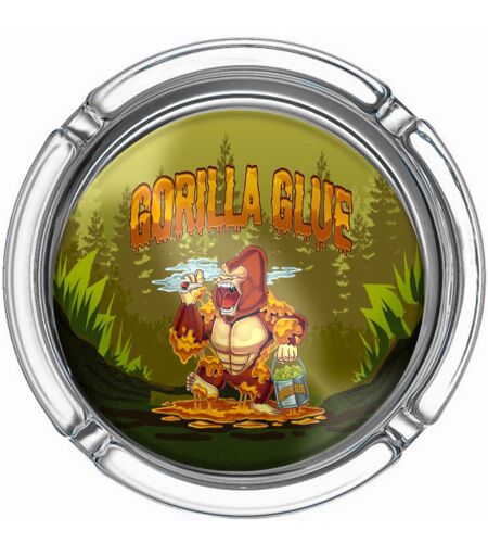 Description An Interesting And Exciting Ashtray Choice The Best Buds Small Glass Ashtray Gorilla Glue. The Ashtrays have a fascinating design of a gorilla holding a huge blunt in one hand and a tin of buds in the other hand. The gorilla is standing in a pool of gorilla glue. Also, the ashtray is perfectly designed to store cigarette butts while also not spilling ash. The glass ashtray comes with four grooves. Made Of Fine Workmanship And Exquisite Craftsmanship. ...