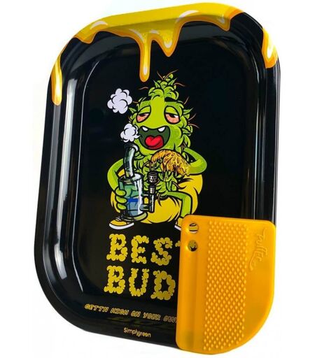 Description The rolling tray with curvy borders. Crafted from high-quality aluminum, the Best Buds Rolling Tray is built to last. The polished steel finish is easy to clean. A design that impresses. Best Bud’s metal rolling tray is as smooth on the surface as they get but has curvy (raised) borders to keep all of your material in one place. Our best bud’s rolling trays includes a magnetic grinder card. Dimensions 14 × 18 × 1,5 cm In compliance with applicable regulations, when selling smoking aids and electronic cigarettes online, the seller is required to verify that the purchaser is at least 18 years of age. ...