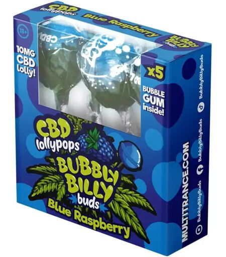 Multitrance Bubbly Billy Buds 10 Mg Blue Raspberry Lollies With Bubblegum Inside – Gift Box (5 Lollies), 100 G