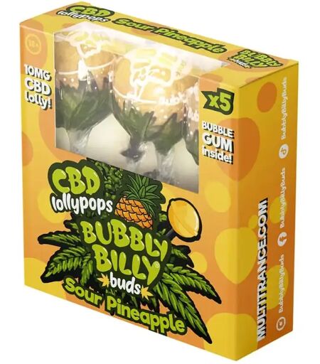 Multitrance Bubbly Billy Buds 10 Mg Sour Pineapple Lollies With Bubblegum Inside – Gift Box (5 Lollies), 100 G