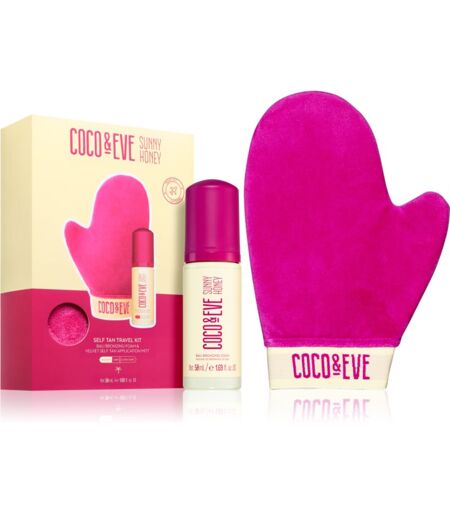 Coco & Eve Sunny Honey Ultimate Glow Travel Kit Self Tanning Foam with an Applicator Mitt travel pack Medium 60 ml