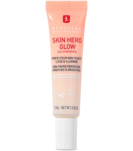 The "glass skin" effect, the way to care for your skin. This non-tinted complexion perfector beautifies your complexion and enhances its luminosity, for a "glass skin" effect that lasts. The lightweight formula instantly smoothes and brightens the skin, creating a blurring effect without covering. Formulated as a true skincare product, SKIN HERO GLOW helps to improve the quality of your skin in just 7 days, revealing its radiance and making you feel comfortable in your bare skin again. GLASS SKIN EFFECTSMOOTHINGMOISTURIZESPROTECTS Effect in 7 days: ENHANCES THE NATURAL GLOW INCREASES RADIANCEREFINES THE COMPLEXIONEVENS THE SKIN TONESTRENGTHENS THE SKIN BARRIER active ingredients: 2% KOREAN WHITE GINSENG COMPLEX: HELPS TO SMOOTH & HYDRATE THE SKINHYALURONIC ACID: HELPS TO MAINTAIN THE SKIN'S NATURAL MOISTURE CONTENTENZYMATIC PEELINGS: HELPS TO REMOVE DEAD SKIN CELLS AND REFINE THE SKIN'S TEXTURE2% MANDARIN EXTRACT : HELPS TO MAKE THE SKIN RADIANT Application: Apply 1 to 2 pumps of SKIN HERO GLOW in the morning. Sweep over the skin from the center of the face outwards for a a more beautiful, even complexion. SKIN HERO GLOW has been developed as a true skincare product and can be used after or instead of your usual face cream (depending on your skin's needs) as the final step in your beauty routine. YOUR SKIN IS ENOUGH. BE PROUD OF IT! Erborian is an innovative skincare brand with Korean origins that combines the effectiveness of Asian medicinal herbs with modern technologies and formulations. The mission: to stay true to yourself and feel good in your skin. Erborian develops hybrid products that combine long-term skin care with an immediate make-up effect. The result is a naturally corrected, radiant complexion. ...