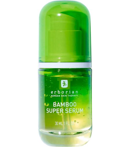 BAMBOO SUPER SERUM, enriched with hyaluronic acid, regenerates the skin with moisture and ensures a pleasant feeling throughout the day. For skin that looks replenished and has a fresh, radiant complexion. This super serum instantly transforms into a lightweight hydrophilic texture that absorbs instantly. The formula binds moisture to the skin's surface and protects it from dehydration throughout the day. Application: Apply to the face in the morning and evening before your cream. Press the pump several times during the first application to activate it. YOUR SKIN IS ENOUGH. BE PROUD OF IT! Erborian is an innovative skincare brand with Korean origins that combines the effectiveness of Asian medicinal herbs with modern technologies and formulations. The mission: to stay true to yourself and feel good in your skin. Erborian develops hybrid products that combine long-term skin care with an immediate make-up effect. The result is a naturally corrected, radiant complexion. ...