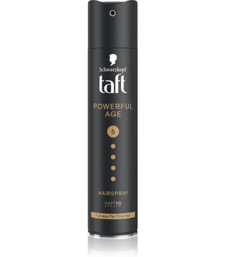 Schwarzkopf Taft Powerful Age, 250 ml, Hairsprays for Women, Hairspray from SchwarzkopfTaftPowerful Age will take care of the final finish and prolong the durability of your hairstyle. It reinforces and holds your hair in place for an extended period of time, no matter how complex, ensuring maximum control over your hair. You will be able to rely on the fact that each strand will remain in place and be protected from external influences such as the wind or humidity. Characteristics: gives total hold for all hair types and styles does not leave a residue and combs out early extra firm hold does not make the hair stick together and keeps hair looking natural How to use: Spray onto dry hair from a distance of 20–30 cm. Spray directly onto the roots to achieve maximum volume. ...