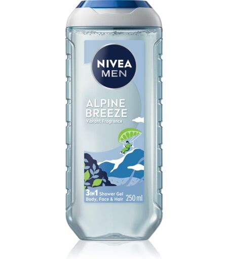 NIVEA MEN Alpine Breeze, 250 ml, Shower gels and soaps for Men, The NIVEA MEN shower gel is a necessary part of your daily hygiene. It cleans the skin all over your body gently and carefully and gives it the hydration it needs. Characteristics: washes the skin and gets rid of dirt moisturises intensely has a pleasant fragrance takes care of your face, skin and hair refreshes pleasantly How to use: It can be applied not only on the body, but also on facial skin. Apply to damp skin and massage until a fine lather forms. ...