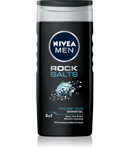 Nivea Men Rock Salt, 250 ml, Shampoos for Men, If you want to save not only time, but also space in the bathroom or even in your travel bag, the NIVEAMENRock Salt 2-in-1 shower gel and shampoo will come in handy. It functions as two products in one - it will quickly and effectively wash both the skin of your body and your hair. It will help remove any dirt and grease and give you a long-lasting fresh feeling, so you'll leave the shower feeling rejuvenated. Characteristics: provides hair and skin care nourishes and cares for the skin prevents skin from drying out gives a feeling of freshness and energy after use a 2-in-1 product is practical for travel a product specially developed for men’s needs How to use: Apply to wet hair and skin all over your body, lather gently, massage in, then rinse thoroughly. Suitable for everyday use. ...
