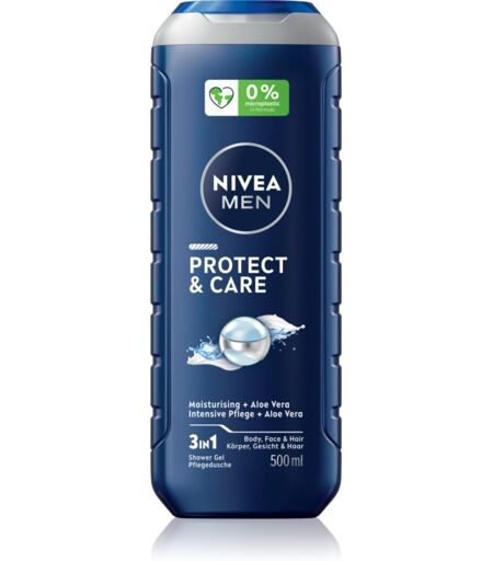 NIVEA MEN Protect & Care, 500 ml, Shower gels and soaps for Men, The NIVEA MEN Protect & Care shower gel makes your daily routine a unique, refreshing experience. Characteristics: gently washes the skin all over your body moisturises intensely gives a feeling of freshness and energy after use makes skin feel comfortable has a pleasant fragrance How to use: Apply when showering or taking a bath. Apply to the skin all over the body, then rinse with warm water. Suitable for everyday use. ...
