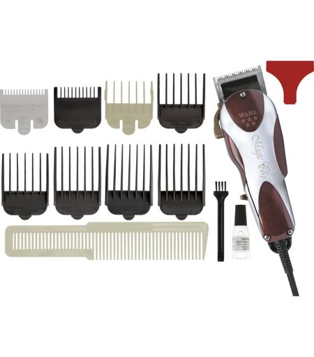 Wahl Pro Magic Clip, 13 pc, Trimmers for Men, Do you want to impress your friends and family with a perfectly finished look? You don't have to run to a specialised salon right away, the Wahl ProMagic Clipdevice will take care of a precise trim like a professional in the comfort of your own home, allowing you to be in control of your appearance at all times. And thanks to its easy operation, anyone can perform simple styling adjustments to their appearance - the device itself takes care of the perfect final result and the precise length of the trim. Characteristics: cuts hair and beard reliably removable attachments ergonomic design ideal for home use, as well as by professional hair salons styles hair without unpleasant pulling cutting height settings can be controlled by a lever on the cutting head oil for lubricating the blades is included long cord for easy handling How to use: Follow the instructions for use included. ...
