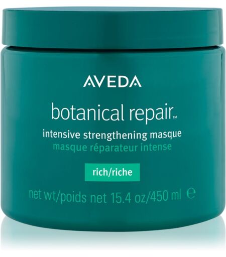Aveda Botanical Repair™ Intensive Strengthening Masque Rich, 450 ml, Hair Masks for Women, Do you feel that your hair needs more intensive care than conditioners or balsams can provide? A hair mask from AvedaBotanical Repair™Intensive Strengthening Masque Rich will perfectly enrich your hair care routine. Thanks to its high concentration of nourishing ingredients aimed at tackling specific problems, it restores vitality and beauty to your hair. It penetrates deep into the hair fibres to strengthen them, nourish them intensively, promote their regeneration and smooth their surface, leaving them beautifully soft to the touch, radiantly shiny, but also more resilient to damage. Characteristics: moisturises intensely regenerates the hair along its entire length makes it easy to comb through and prevents damage restores hair structure goes deep into the hair fibre hair is soft to the touch gives hair a brilliant shine Ingredients: no silicones vegan product contains a minimum of 94% ingredients of natural origin How to use: Wash with shampoo, then apply to damp hair. Leave to act as instructed on the packaging, then rinse thoroughly. ...
