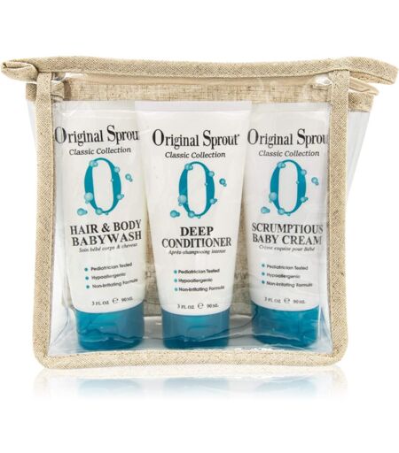Original Sprout Travel Trio,  , Kids’ shower gels For Kids, Everything for your baby in one package. The Original Sprout Travel Trio beauty gift set contains not one but several products that make it easier to look after your baby’s skin.  Characteristics:  amazing as a gift  The set contains:   Original Sprout Classic Collection Hair & Body Babywash Washing Gel for Body and Hair for sensitive skin 90 ml  Conditioner for children 90 ml  Original Sprout Classic Collection Scrumptious Baby Cream Multi-Purpose Cream for babies and children 90 ml   Ingredients:  vegan product ...