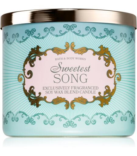 Bath & Body Works Sweetest Song, 411 g, Scented Candles Home Scents, The Bath & Body Works Sweetest Song scented candle will give your home a wonderful fragrance and create a cosy atmosphere that will make you feel great all the time. Characteristics: a sweet aroma 3 wicks Ingredients: 100% soy wax How to use: Place the candle on a heat-resistant surface. Do not leave to burn for more than four hours. Never let the candle burn to the end. Never leave a burning candle unattended or close to easily flammable objects. Keep out of the reach of children and pets. Always let the candle burn until the surface completely melts to prevent an unwanted hollow in the wax from forming. ...