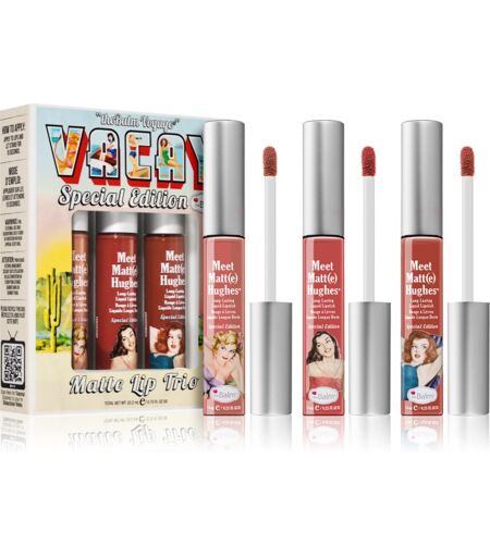 theBalm X Model Roz Voyage, , Cosmetic Sets for Women, Everything you need for perfect makeup in one place. The theBalmX Model RozVoyage beauty gift set contains not one but several beauty products that will help create or enrich your regular makeup routine. A gift set full of makeup products will delight you or your loved ones as a gift. The set contains: Meet Matt(e) Hughes Persistent Long-Lasting Matte Liquid Lipstick 7,4 ml Meet Matt(e) Hughes Charismatic Long-Lasting Matte Liquid Lipstick 7,4 ml Meet Matt(e) Hughes Adventurous Long-Lasting Matte Liquid Lipstick 7,4 ml Characteristics: dries quickly long-lasting creamy texture matte effect How to use: Apply a layer of colour to the lips with an applicator. ...