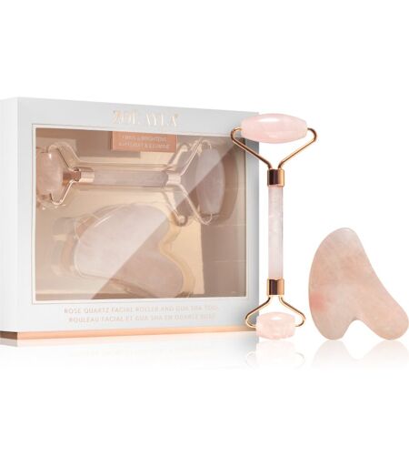 Zoë Ayla Rose Quartz Facial Roller And Gua Sha Tool Gift Set for the face